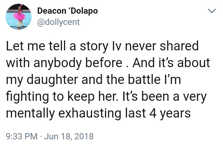 “Let me tell a story Iv never shared with anybody before . And it’s about my daughter and the battle I’m fighting to keep her. It’s been a very mentally exhausting last 4 years