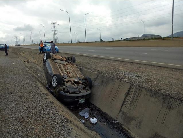 According to Mr. Onoride, his wife was on her way to work when a speeding car clashed with her own along airport road. Her own vehicle plunged into the gutter but she was quite unharmed.