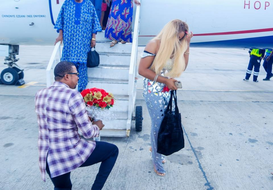 Yesterday, a Nigerian man pulled a ‘surprise’ on his girlfriend as he proposed to her on the tarmac of the Asaba Airport in Delta state just as they disembarked form a plane.