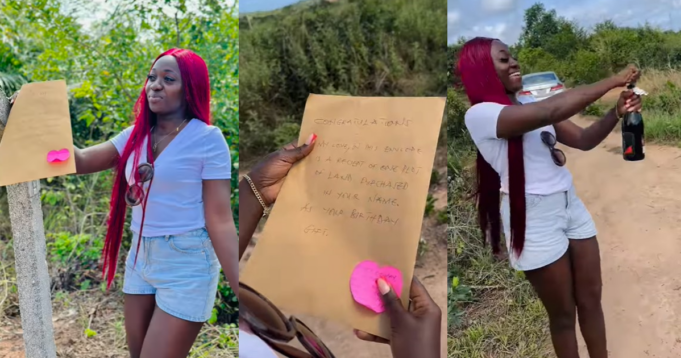 The lady @arabah_official revealed in a viral clip that her partner gave her a piece of land as a birthday present.