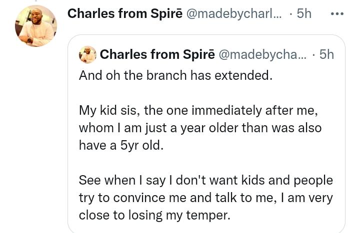 A Nigerian man has taken to Twitter to share his interesting family story to explain why he has decided not to have children of his own.