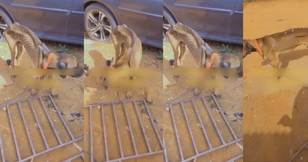 In the video, the man displayed his two dogs, visibly emaciated with protruding bones.