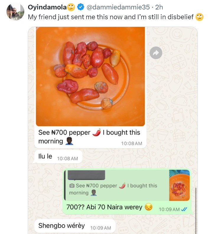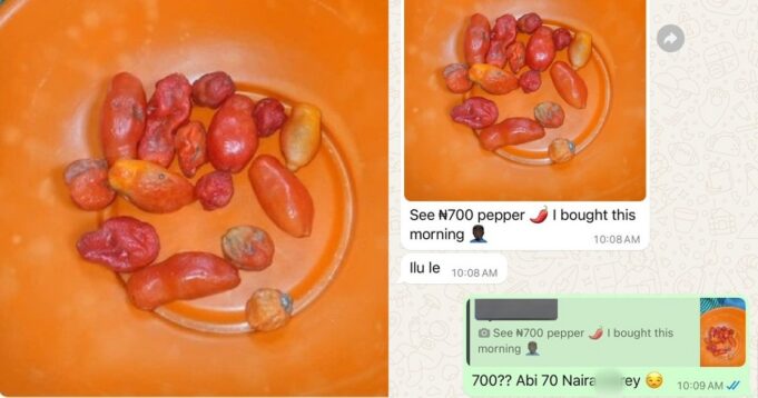 Netizens have been forced to complain about the high cost of living after a man shared an image of the tomatoes and peppers he bought for seven hundred naira.