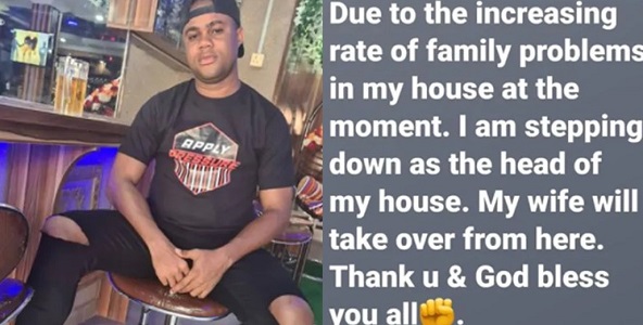 Sojarex took social media to reveal that he would be stepping down as the head of his house due to increased family problems, adding that his wife would take over from him.