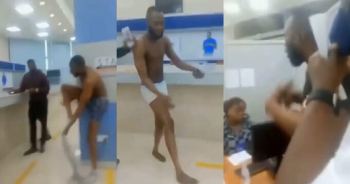 A video that’s began circulating online shows the moment a man stripped in one of the new generational banks to protest against “illegal withdrawals” from his account.