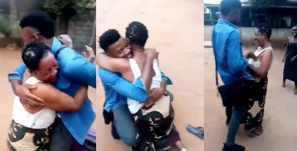 A Nigerian mother was overwhelmed with joy after her son, based abroad returned back home after seven years.