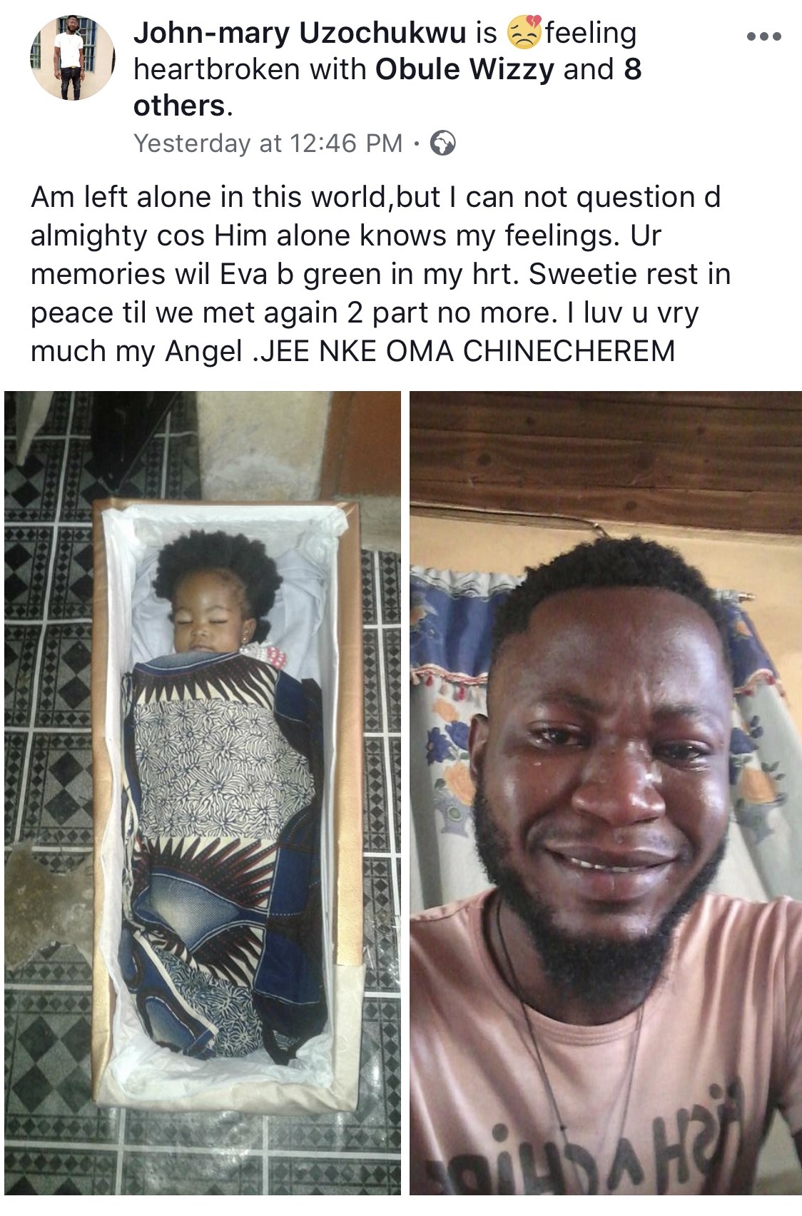 A Nigerian man is mourning the loss of his daughter, who passed on after a brief illness.