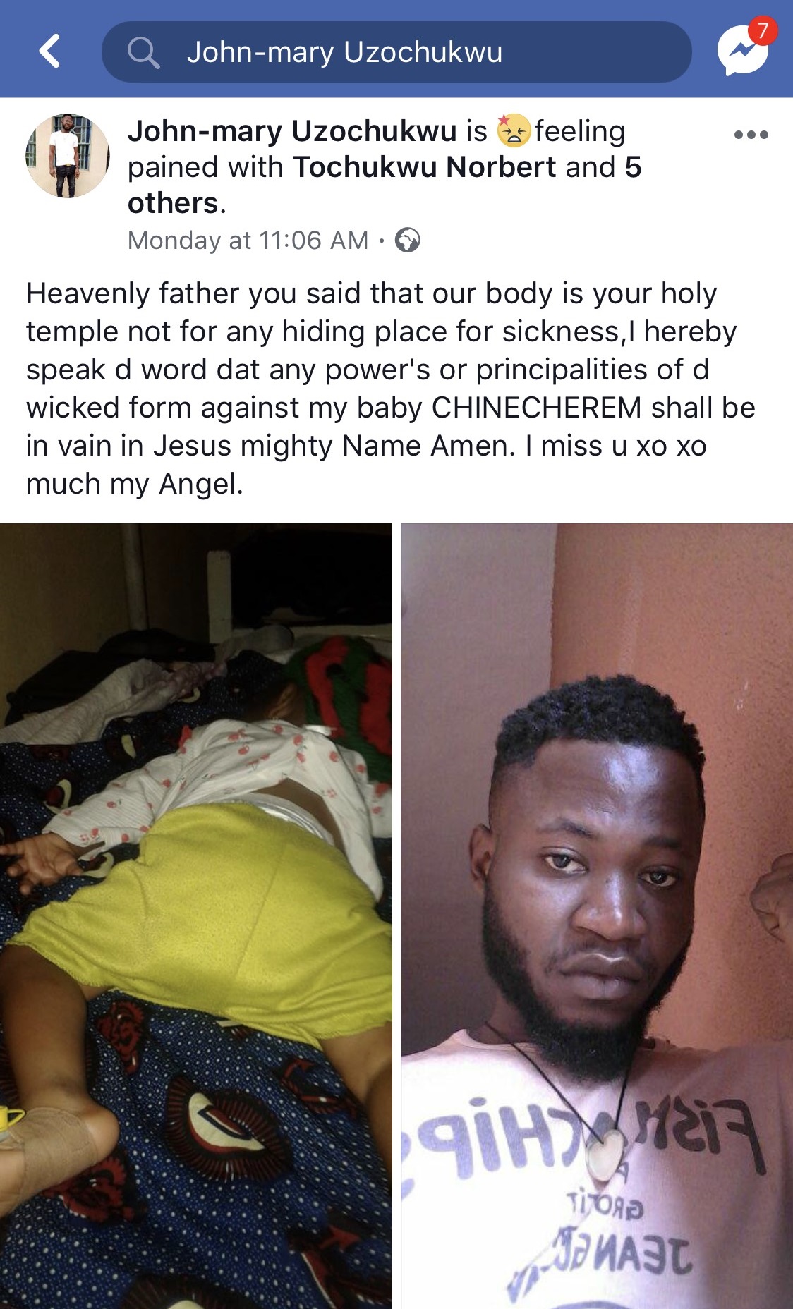 Taking to his Facebook page, the man identified as, John-mary Uzochukwu shared photos of his daughter captioning the photos: