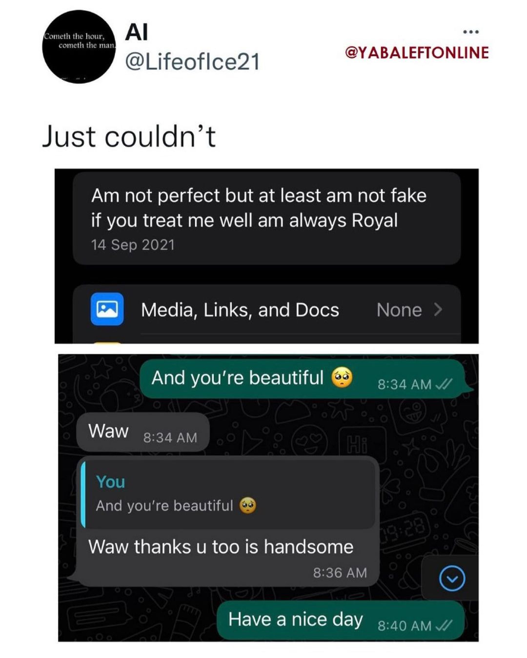 The lady then took a screenshot of her chats with the man alongside photos of him and his bride on their traditional wedding day and shared online. See here