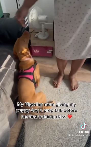 A video of a Nigerian mother giving her daughter’s dog a pep talk before her training session has gone viral on social media, and it has stirred hilarious reactions from netizens.
