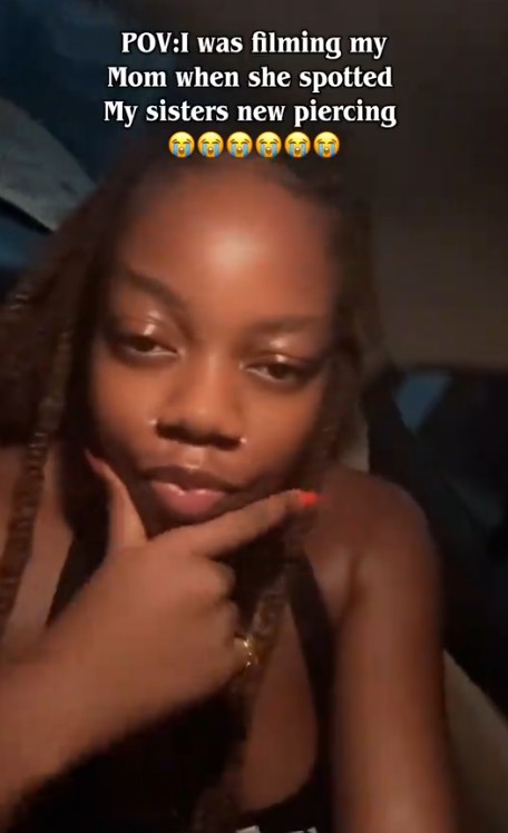 To hide the second ear piercing, her younger sister covered her ear with her hand and the other ear with her phone, insisting it was an earpod until her mum aggressively pulled her out of her hiding.