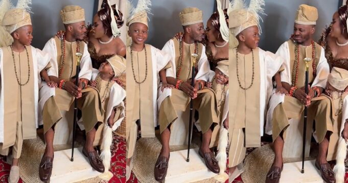 A Nigerian mum reveals her kids’ adorable and funny reaction as she engages in a romantic display with their dad during a family photoshoot.