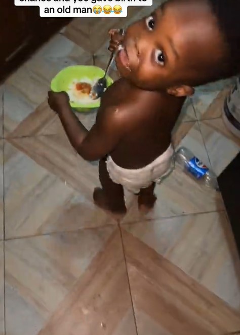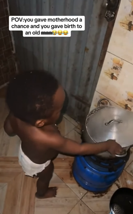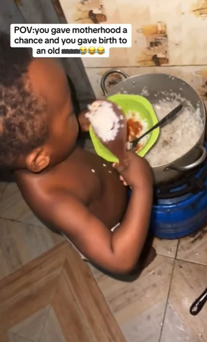A Nigerian mum was speechless upon discovering her 2-year-old son independently serving himself food from a pot in the kitchen.