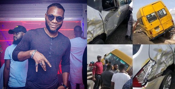 “Was on my way to the office on 3rd mainland bridge and this happened. The bus behind lost its breaks and was heading into the lagoon and had to use mine to stop. The passengers are thanking God and me that my vehicle stopped them from entering the lagoon.
