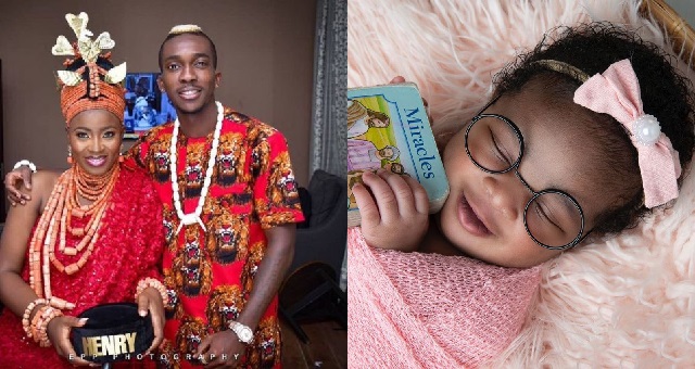 Nigerian Footballer, Henry Onyekuru and his wife, Esty have shared first photos of their newborn daughter.