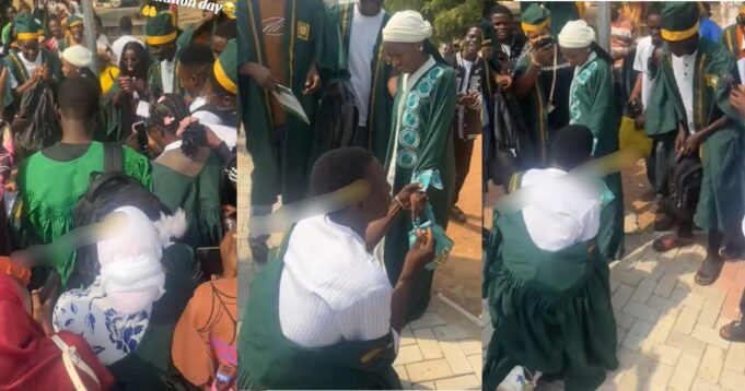 A Nigerian student has sparked buzz after a viral video where he proposed to his love during their matriculation surfaced online.