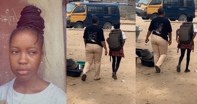 A Nigerian mum confidently accompanies her daughter to school after a teacher sent her home over her Ileya hair.