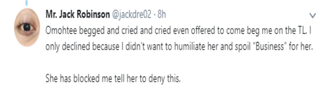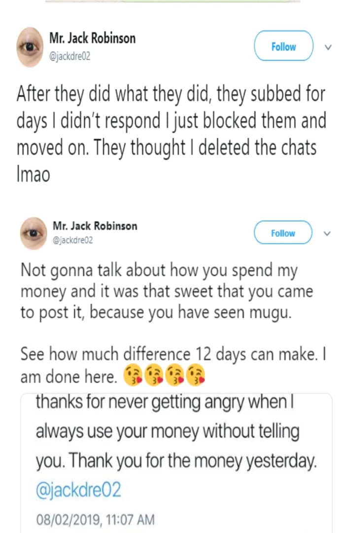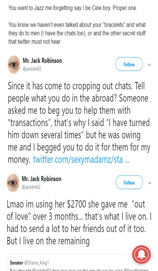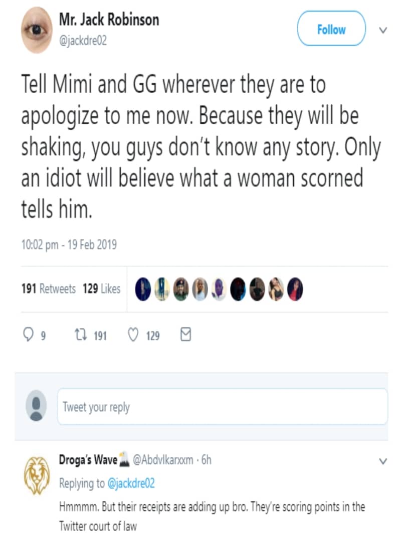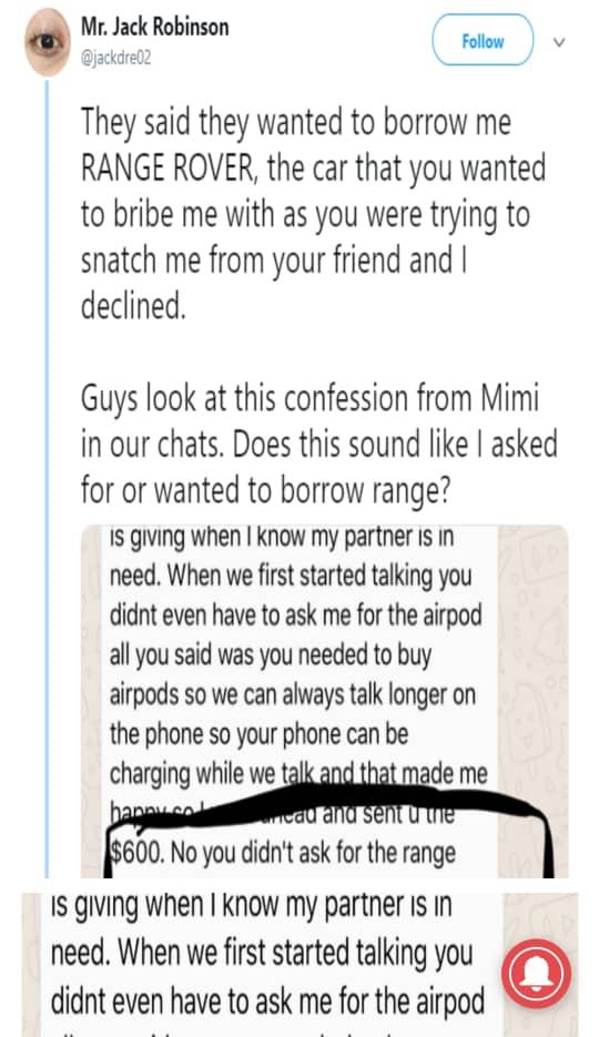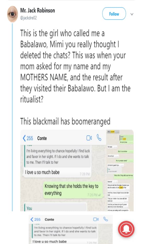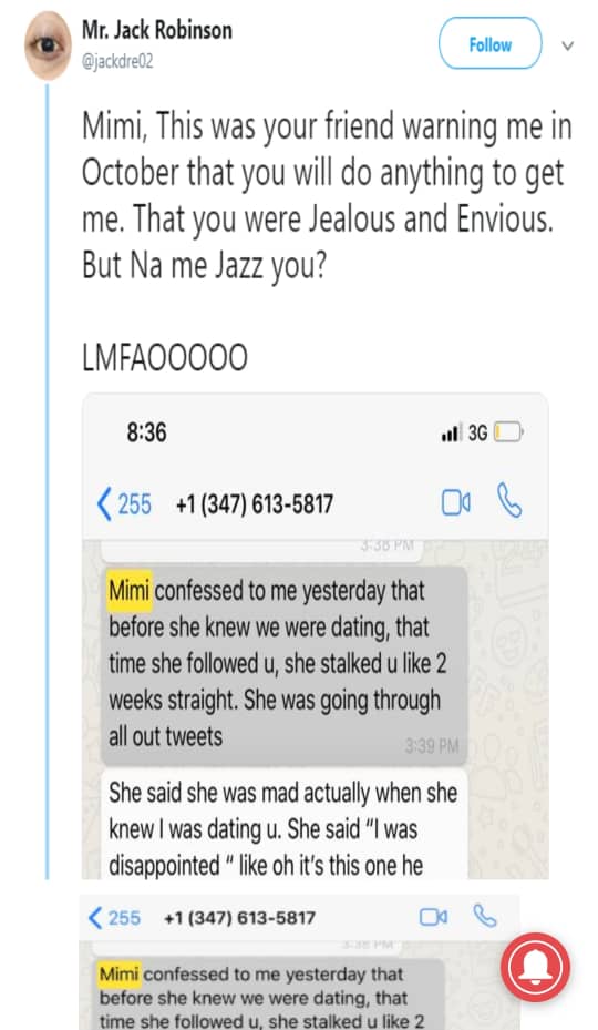 Mimi and her boyfriend, Jack are on twitter releasing receipts after their relationship went sour.