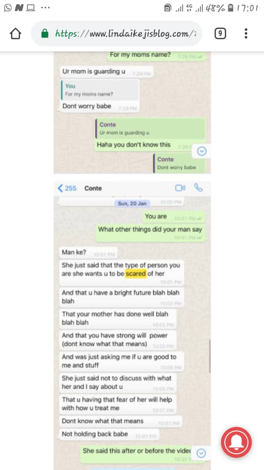 See screenshots of Mimi accusing jack of manipulation and extortion below.
