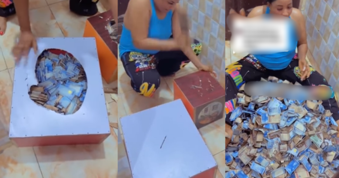 The viral video of the woman opening her savings boxes has sparked a wave of discussion among curious online users.