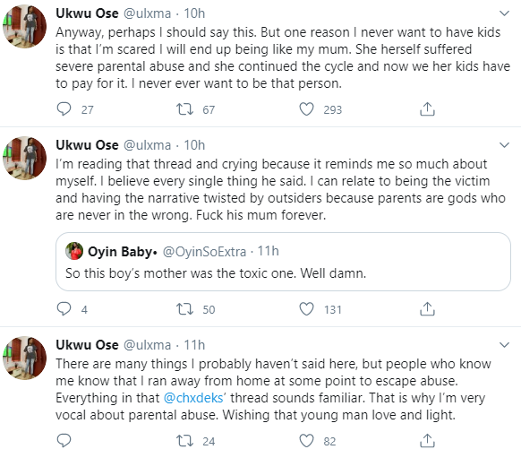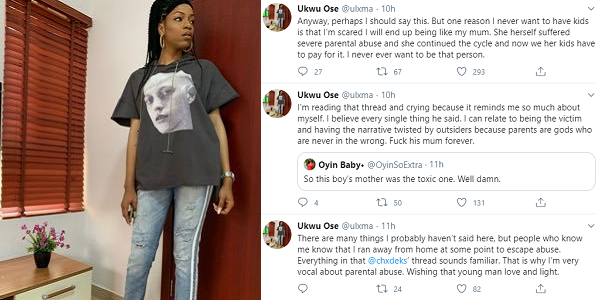 Read her tweets about parental abuse below.