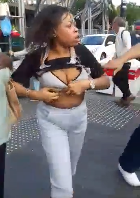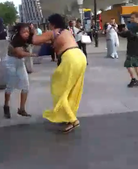 Two Nigerian women in Stratford, London who are fans of two Nigerian Facebook personalities, Tolulope Bashirat Adeoye aka Abike Jagaban (Omo Aye) and Tokunbo Aboderin (Omo Ewe) threw caution to the wind yesterday as they engaged in a free for all fight.