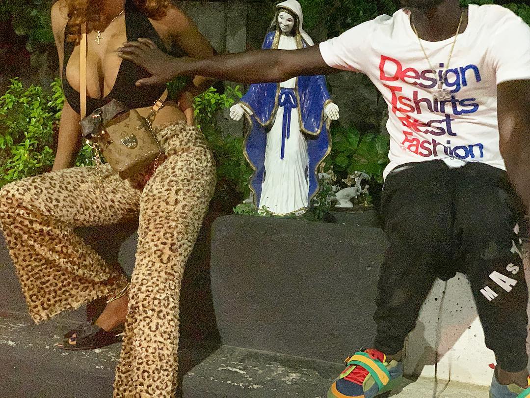 Nigerian Pornstar, Kingtblakhoc recently took to Instagram to wish his fans a Happy Easter, also uploading a photo where he grabbed a lady’s boobs in front of the statue of Mary.