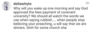 But truth be told.. If a school owned by a church is Dt expensive… Den u guys are doing us no good.. Not just covenant uni