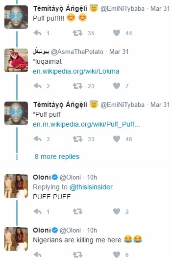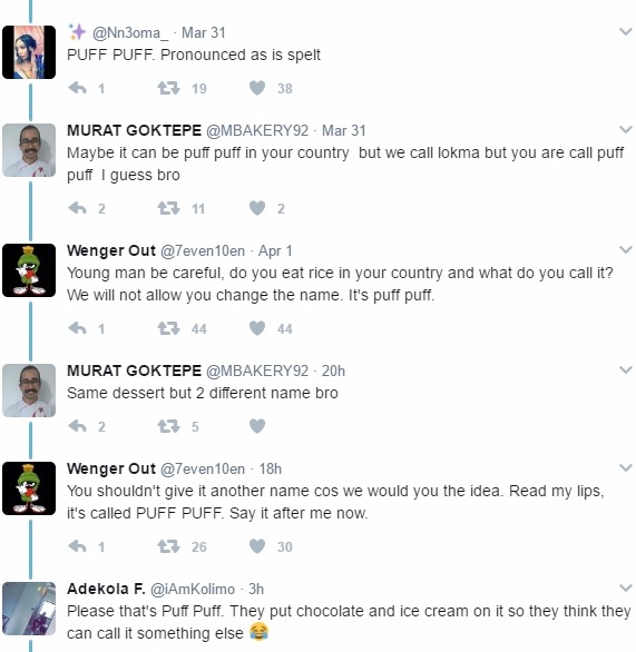In some reactions on Twitter, they can be seen forcing the foreigners to accept the snack’s name as ‘Puff Puff’ and not the complex name, “loukoumades” given to it.