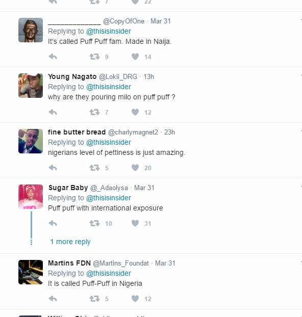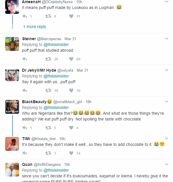A popular foreign media publishing company, INSIDER via its Twitter page, @thisisinsider, shared a video of popular Nigerian snack, ‘Puff Puff’ calling it ‘loukoumades’, and Nigerians were not going to have any of that!