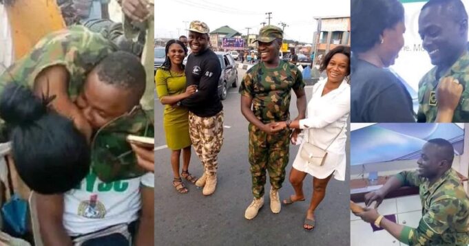 Shortly after the Nigerian army gave the reason why a female soldier who accepted a male corps member’s proposal at the NYSC orientation camp in Yikpata, Kwara State, was detained, netizens have dug up old photos of some male soldiers who proposed to their partners while in uniform and didn’t face any consequences from the Nigerian Army.