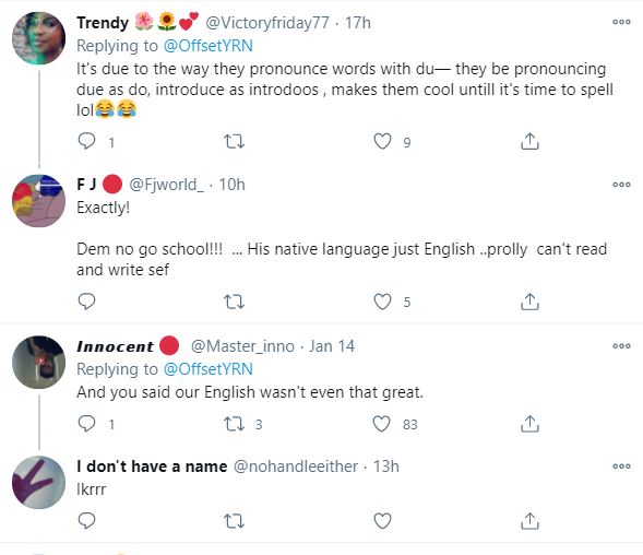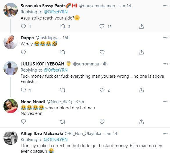 So why can’t offset come over to Nigeria and teach us his English, awww well I think offset should be humble, just be humble Mr offset.🙏🙏😠😠