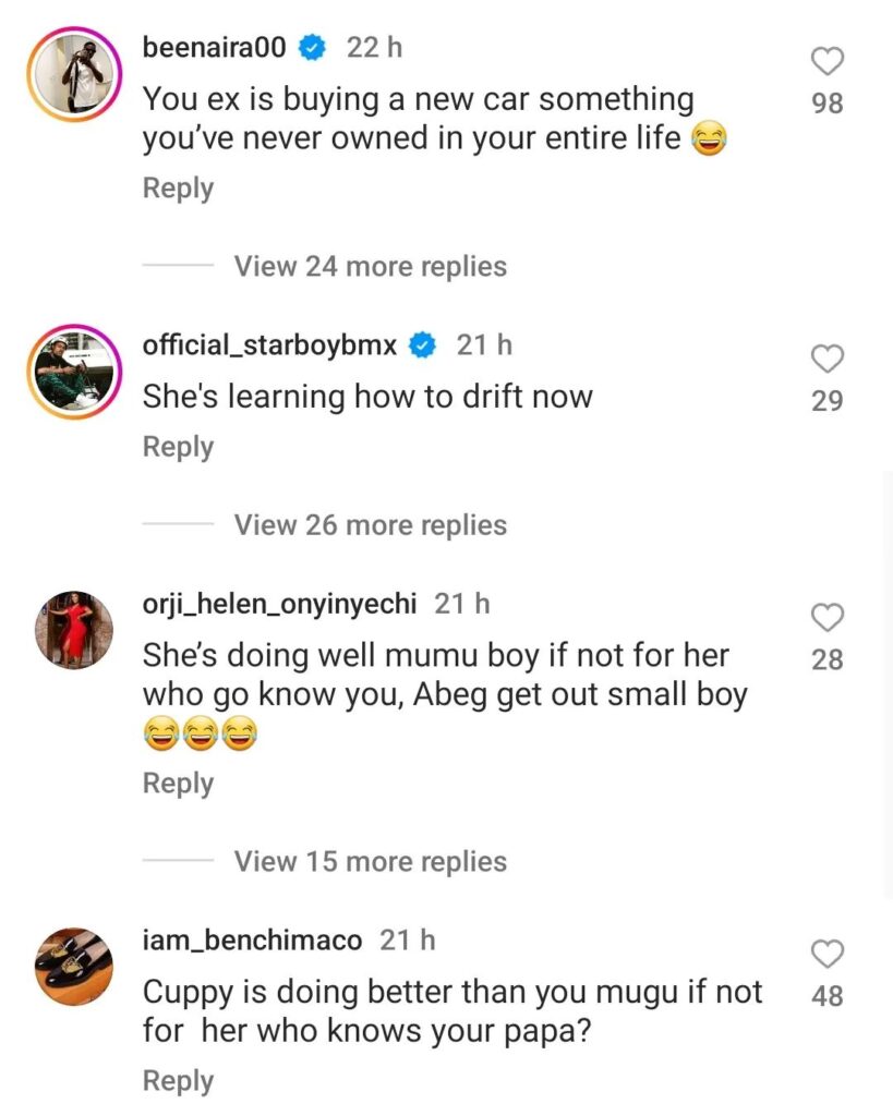 In response to his post about his ex, one follower mentioned that his ex-lover is currently learning how to drift, referring to ‘car drifting.’