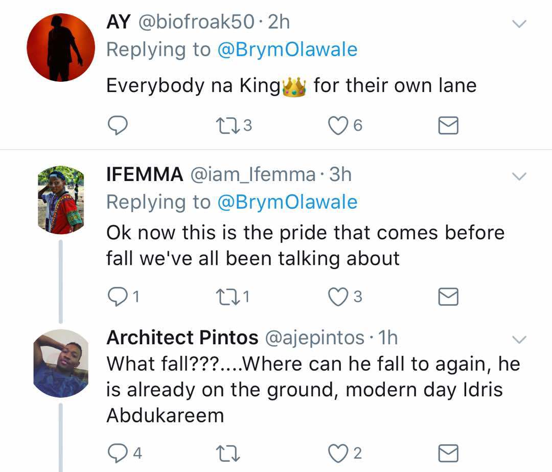 Of course, Nigerian music fans are expressing diverse opinions on his tweet, some agreeing with him, others criticizing him for what they say is “pride.”