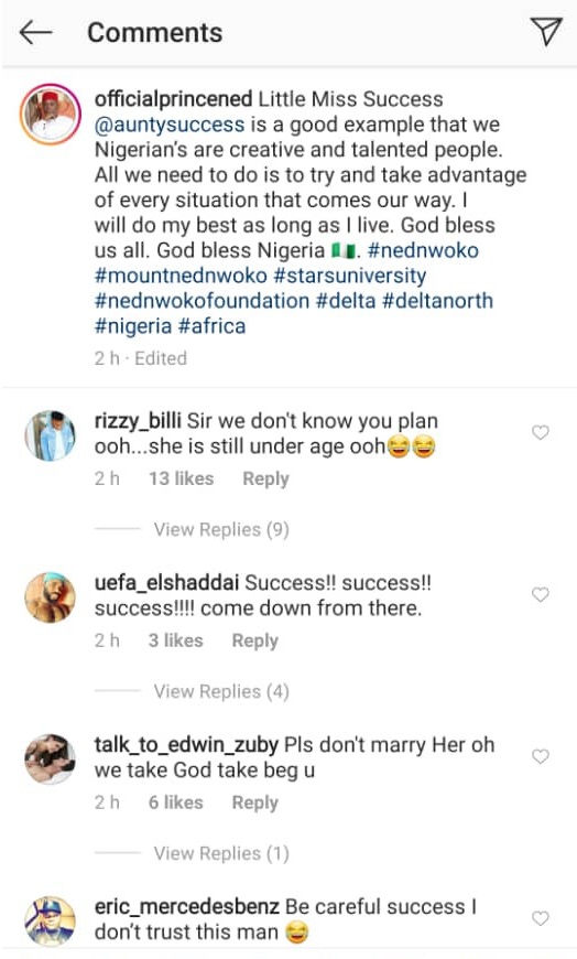 “The post comes a day after he had his traditional marriage with 20-year-old actress Regina Daniel and below are how some folks are reacting to the new photo with little Success.”