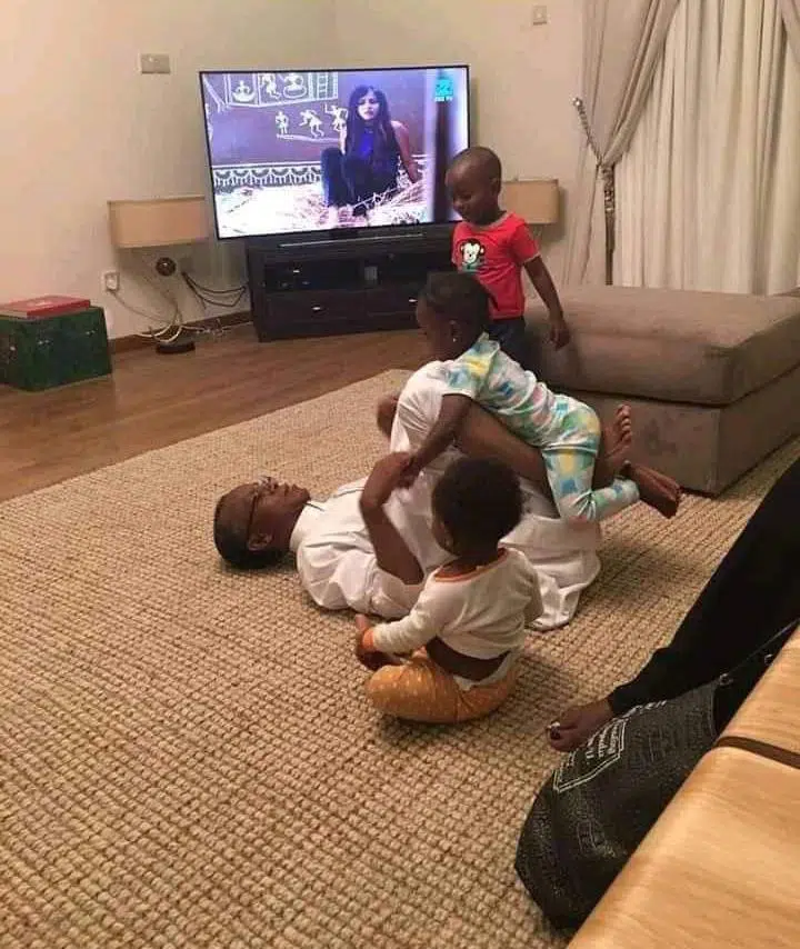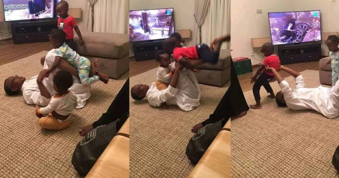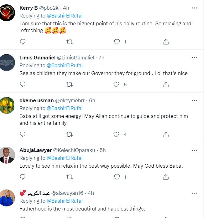 In the photos, El-Rufai could be seen carrying one of his grandchildren on his belly and another with his legs.
