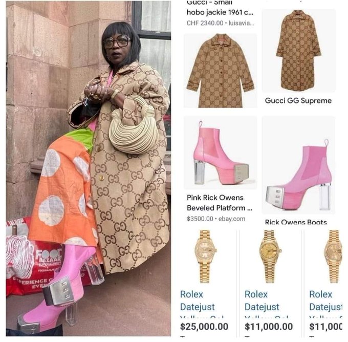 The wife of the speaker stepped out wearing a Gucci coat costing $4,800 (N2,640,000), a Rolex wristwatch which costs $11,000 (N6,050,000), a pair of Rick Owens Shoe estimated at $3,500 (N1,925,000) and a handbag reportedly worth £1,995 or $2,661 (N1,463,550).
