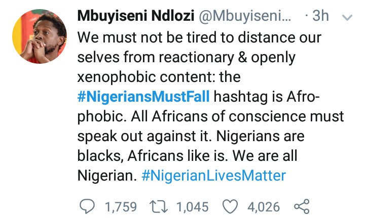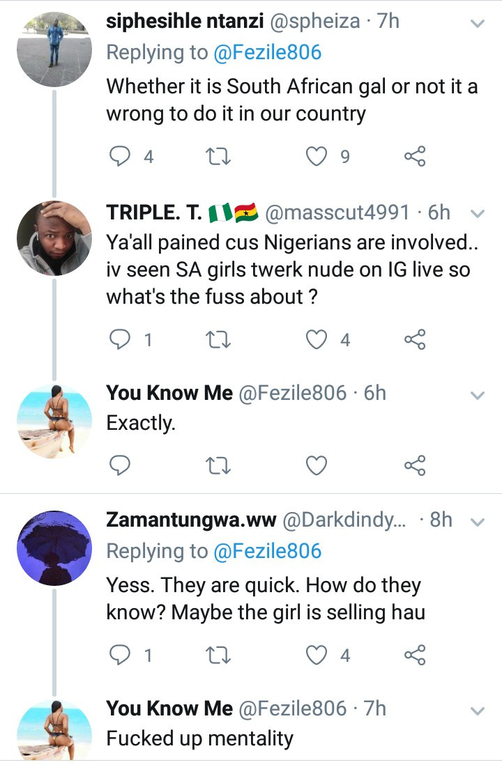 Some other South Africans came to the defence of Nigerians and accused their countrymen of xenophobia. They pointed out that femicide is on the rise as South African men kill their women and get away with it. But those people were also shut down as South Africans passed the blame to Nigerians.