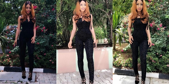 Nina has shown off a lovely black jumpsuit given to her by SlimGirl shape wear.