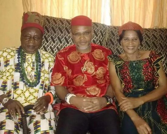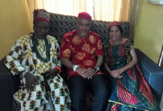 Nnamdi Kanu today, arrived at his hometown in Isiama Afara Umuahia in Abia State where he met his parents, Eze Israel and Ugoeze Nnenne Kanu, one week after his release from Kuje Prison in Abuja.