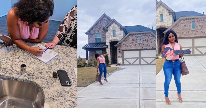 A Nigerian lady who works as a Nurse in the United States of America has taken to her social media page to celebrate after she purchased her first house.