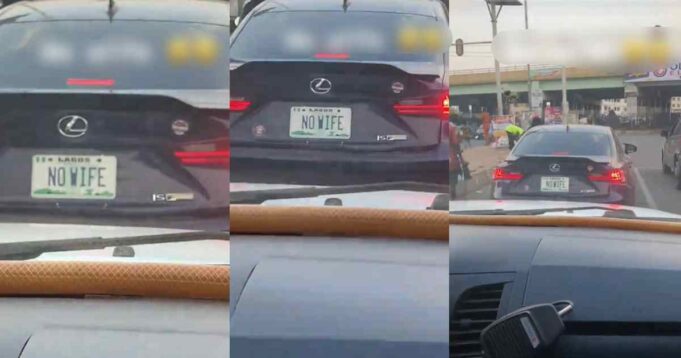 A lady was astonished after spotting a car with a customized license plate reading “NO WIFE” in traffic at Abeokuta, Ogun State.