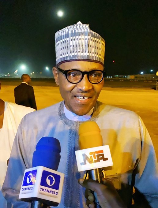 The official Twitter handle of the Presidency posted a photo of Buhari’s arrival at the airport on Friday night.