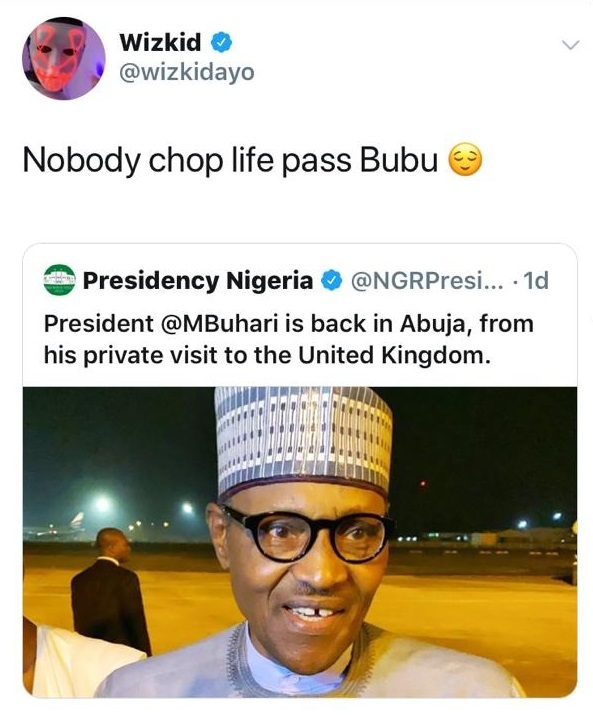 Nigerian singer, Ayo Balogun popularly known as Wizkid, has shown his funny side after he sparked hilarious reactions on social media on Saturday with his tweet about President Muhammadu Buhari’s return from London.