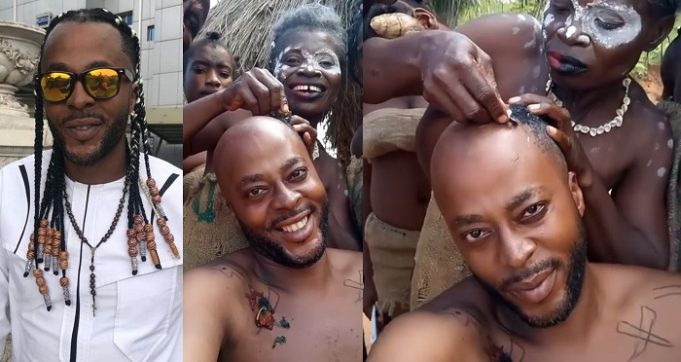 Nollywood actor, Benson Okonkwo who is known for his signature long locs, has surprised many after he shaved his hair with a razor blade on the set of a new movie.