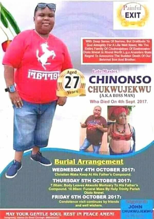 Chinonso who died on September 4th this year, was interred at his father’s compound in Nnewi, Anambra state yesterday October 5th.