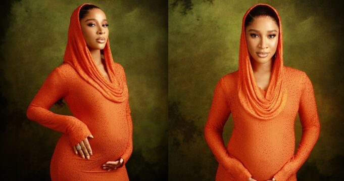 Adesua announced the arrival of their second child in a stunning maternity photo shoot via her Instagram page.