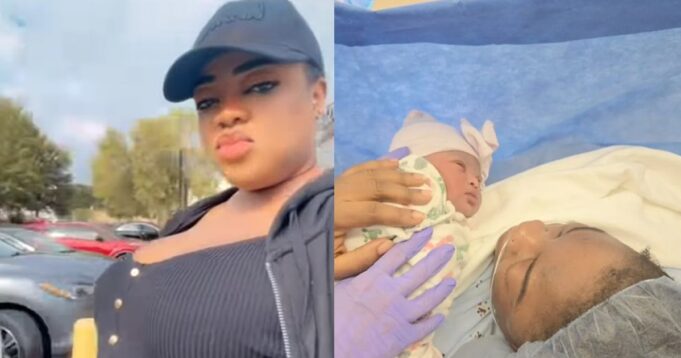 Ronke Odusanya, a colleague in the entertainment industry, shared a picture of Sotayo and her baby in the labour room shortly after the baby was born.