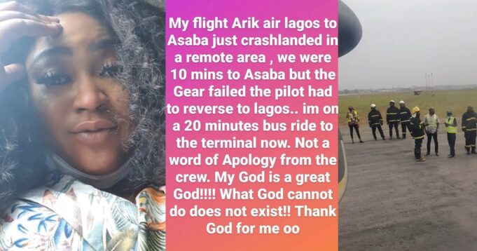 According to the actress, the aircraft was on its way to Asaba, the Delta State capital from Lagos when it developed fault and crash landed in a remote area.