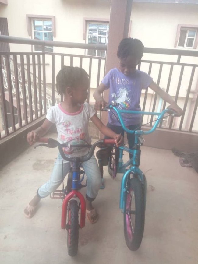 A Nigerian man, Oluwadamilare Dauda has taken to social media to reveal that he bought bicycles as gifts for his cute little girls.